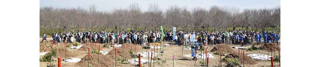 大阪府下の23の企業と100名以上の一般参加者を加えた500名余りが集まり3600㎡のスペースに1700本程の苗木を植えました。