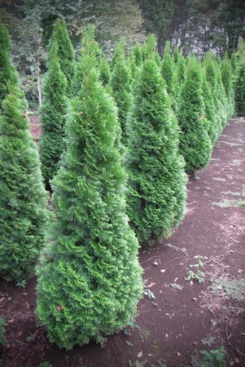 北アメリカのノースカロライナ州からバージニア州、カナダに至る広域に分布するニオイヒバ(Thuja occidentalis)は、日本の気候に適し移植や管理も簡単にできるということで、その園芸品種は緑化樹木としての需要が多く品揃えも充実しています。